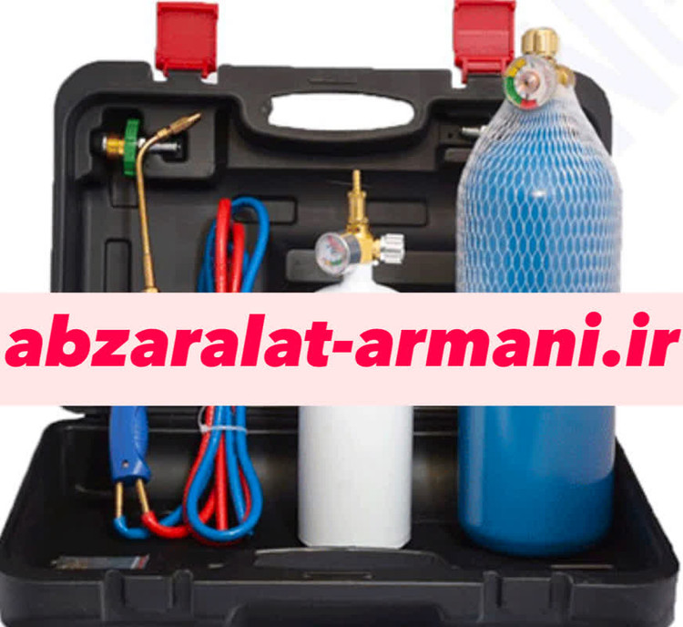 این تصویر یک ست جوشکاری قابل حمل را نشان میدهد که شامل کپسولهای اکسیژن و گاز، سرپیک، شیلنگها و مانومتر است و در یک کیف مخصوص قرار دارد. این نوع ستها برای کارهای سیار و تعمیرات مناسب هستند که ساخت کشور چین از طرح تایوان میباشد