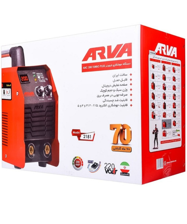 دستگاه جوش مدل ۲۱۸۱ تربو پلاس آروا مناسب جوشکاری با الکترود ۳،۴،۵ مدل آروا